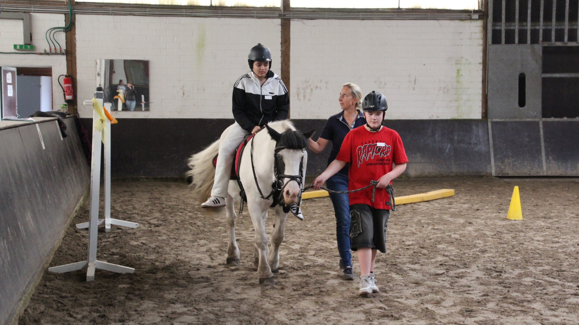 In einem weiteren „Workshop“ bestritten die Schüler*innen des 6. und 7. Jahrgangs im Team einen Parcours. Zu Beginn des Parcours wählten auch hier die Schüler*innen eine Mutmachkarte aus, die sie besonders anspricht und in Alltagssituationen unterstützen kann. Danach ritten die Teams geführt durch einen Parcours, dabei wurde abwechselnd geführt und geritten. Bei der Bewältigung der gemeinsamen Aufgabe zeigte sich, dass die Schüler*innen hoch konzentriert und gegenseitig sehr achtsam waren. Dieses Erleben der individuellen Stärken konnte unter anderem im anschließenden Gespräch auf den Alltag transferiert werden, denn schnell war klar, beim schulischen Lernen funktioniert das so oft nicht. Die Erfahrung, es zu können, wenn das Ziel vor Augen ist und die eigenen Stärken in den Blick genommen werden, war für einige Schüler*innen ein Schlüsselerlebnis.