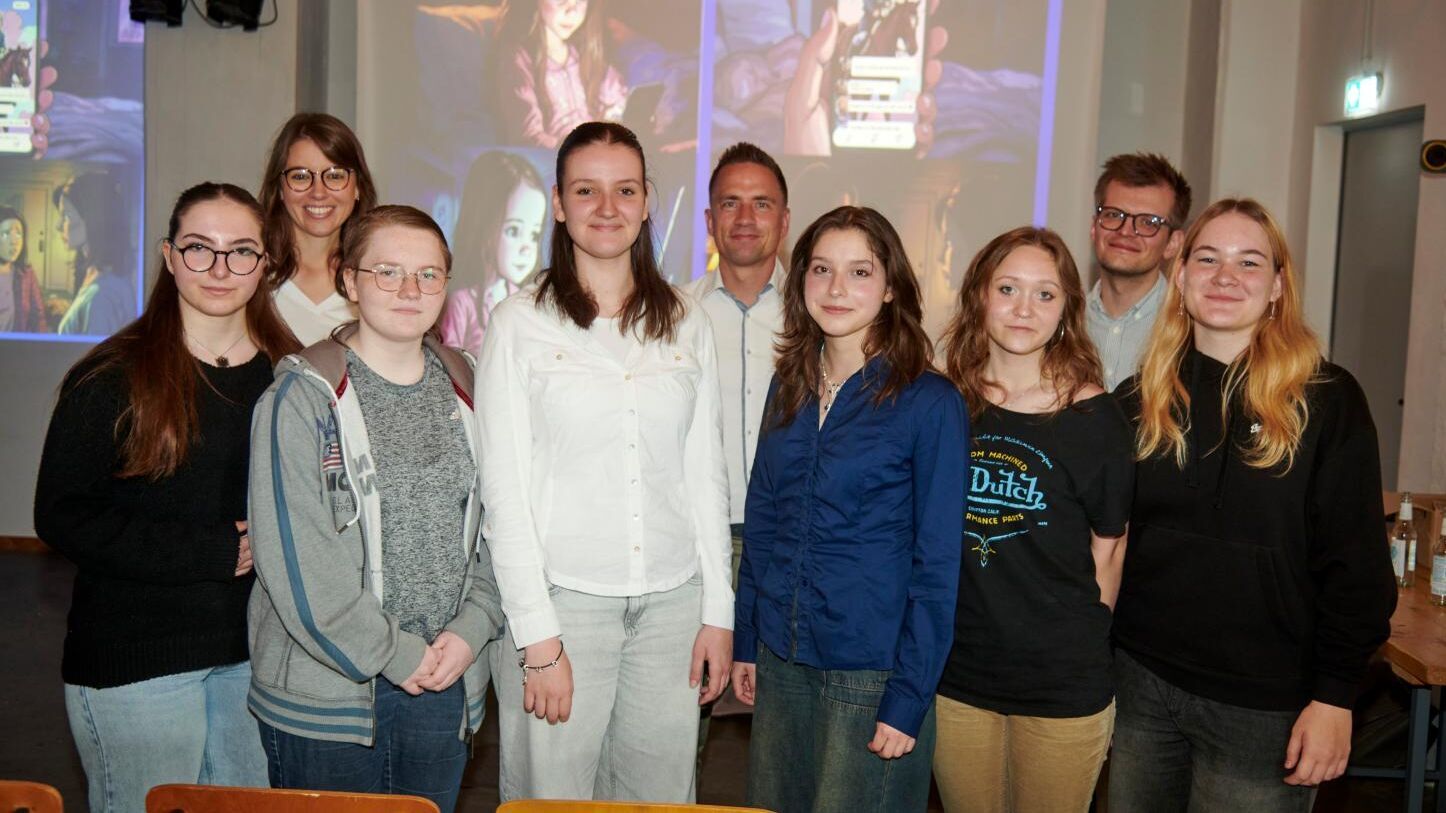 Nach der Diskussion betraten die drei Projektteams des Intensivprogramms nacheinander die Bühne. In jeweils rund zehn Minuten präsentierten sie ihre Ideen, erklärten Problemstellungen, Zielgruppe, Nutzen und geplante Umsetzung. Die anschließenden Antworten auf Rückfragen aus dem Publikum zeigten, wie ernsthaft und reflektiert die Jugendlichen sich mit ihren Themen auseinandergesetzt hatten. Statt eines klassischen Wettbewerbs mit Platzierungen gab es am Ende eine symbolische Preisvergabe, die das Engagement aller Beteiligten gleichwertig würdigte. Nicht das Gewinnen, sondern das gemeinsame Lernen und Wachsen standen im Mittelpunkt. In zwei Gruppen aufgeteilt, besuchten die Jugendlichen anschließend entweder das Startup-Labor RISE an der Hochschule Osnabrück oder nahmen an einer strukturierten Evaluation des Projekts teil. Im Startup-Labor erhielten sie Einblicke in die professionellen Gründungsmöglichkeiten für Studierende in Osnabrück.